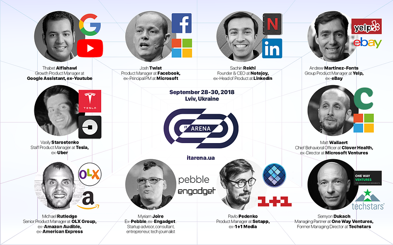 For context: IT Arena, held on September 28–29, 2018, is a technology conference aimed at connecting East Europe’s tech scene with the rest of the world. It hosts ~2500 guests and was named Ukraine’s best tech event in 2015, 2016 and 2017. Product Track is one of 4 tracks and is centered around Product Management. Here is a quick overview of speaker lineup for Product Track 2018: