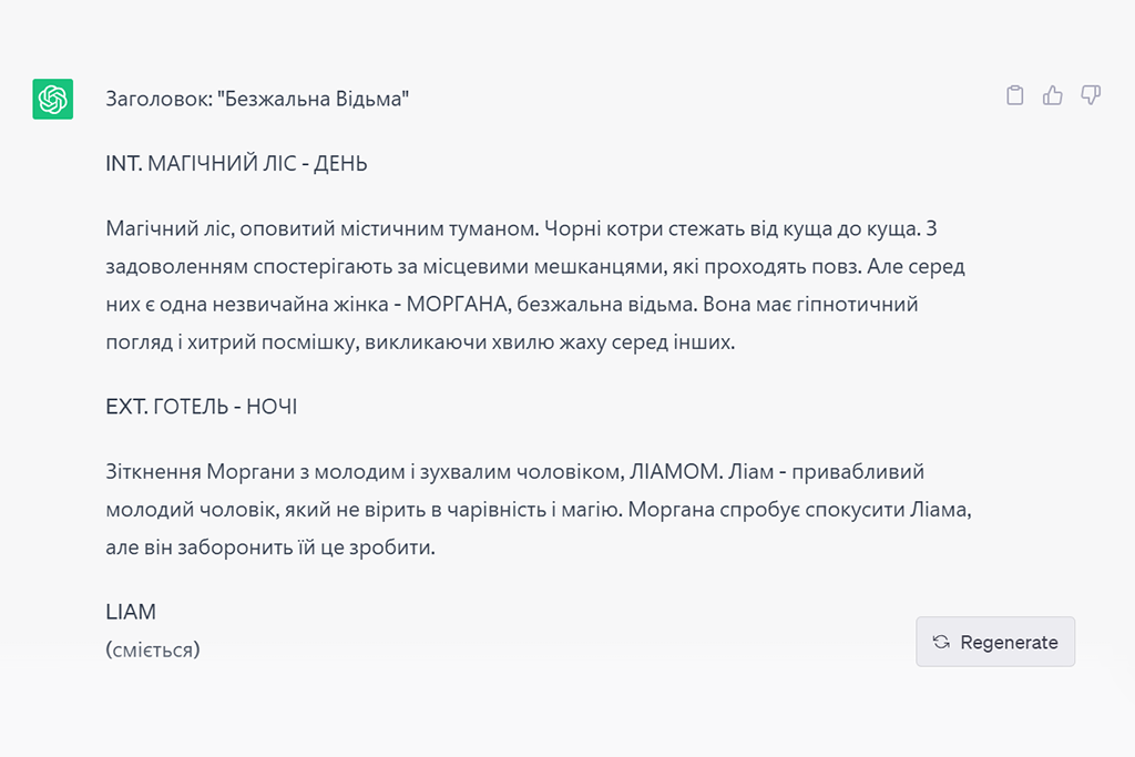 Ми попросили ChatGPT написати сценарій про безжальну відьму, яка вбивала всіх підряд, включно з чоловіком, який її не кохав.
